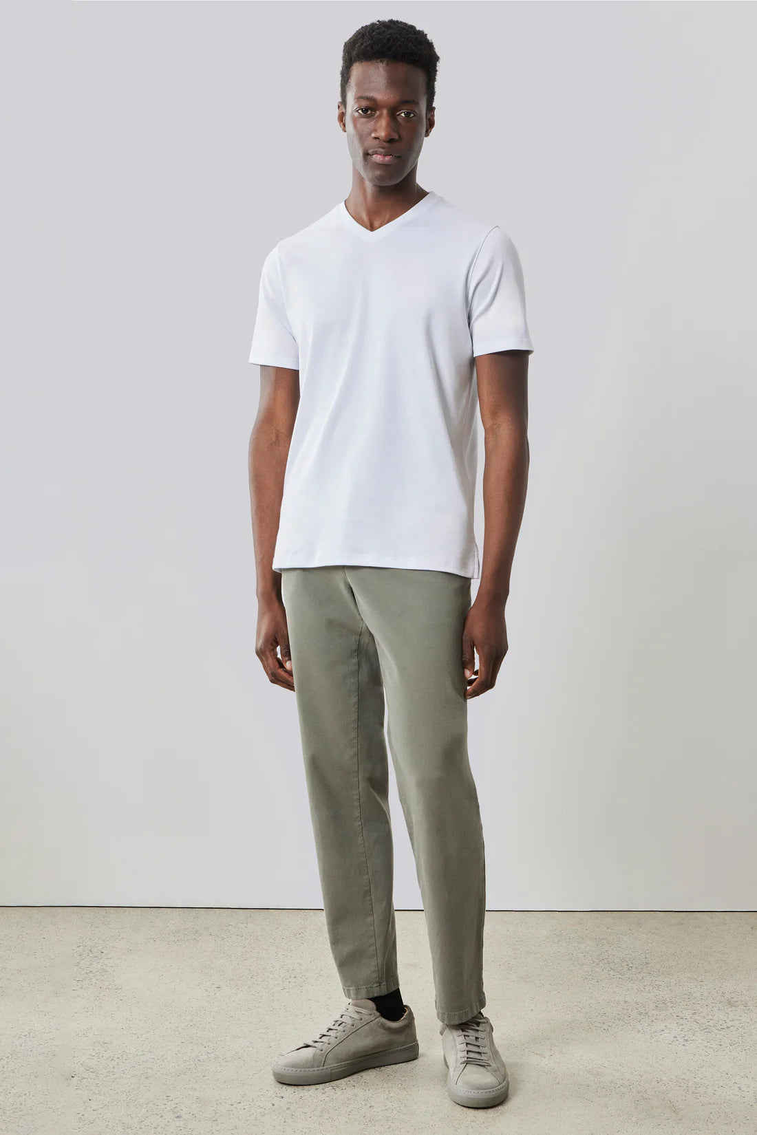 Also known as the Georgia V-neck T-shirt. It is the equally comfortable and stylish brother of The Barakett Tee. Made with our exclusive Georgia fabric with Soft Water finishing, it's the ultimate in comfort, luxurious hand feel, and clean appearance. A versatile piece in any man's wardrobe; elevate any look with the most comfortable V-neck ever.