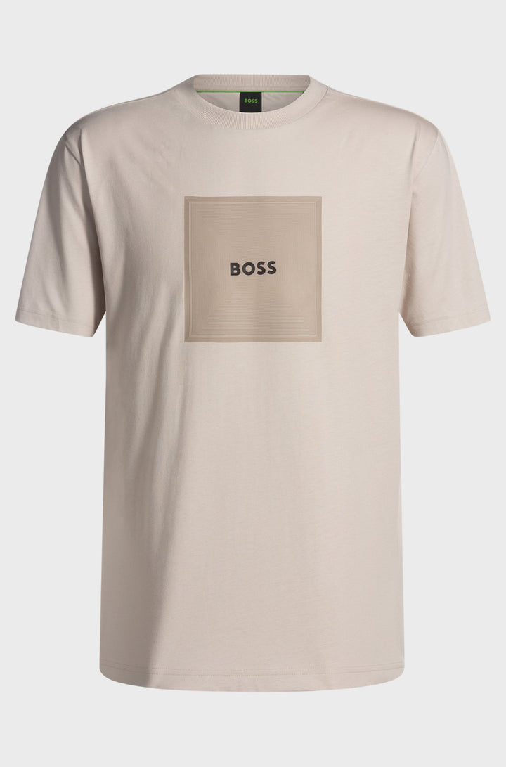 Cut to a comfortable straight fit in breathable cotton jersey, this BOSS Menswear T-shirt will style easily through the week. Printed with fineline logo artwork. This product’s raw material is derived from regenerative agriculture: an approach focused on preservation and restoration that aims to increase biodiversity, preserve water quality and improve soil health while absorbing CO2. Regenerative agriculture also promotes animal welfare and fair working conditions for farmers.