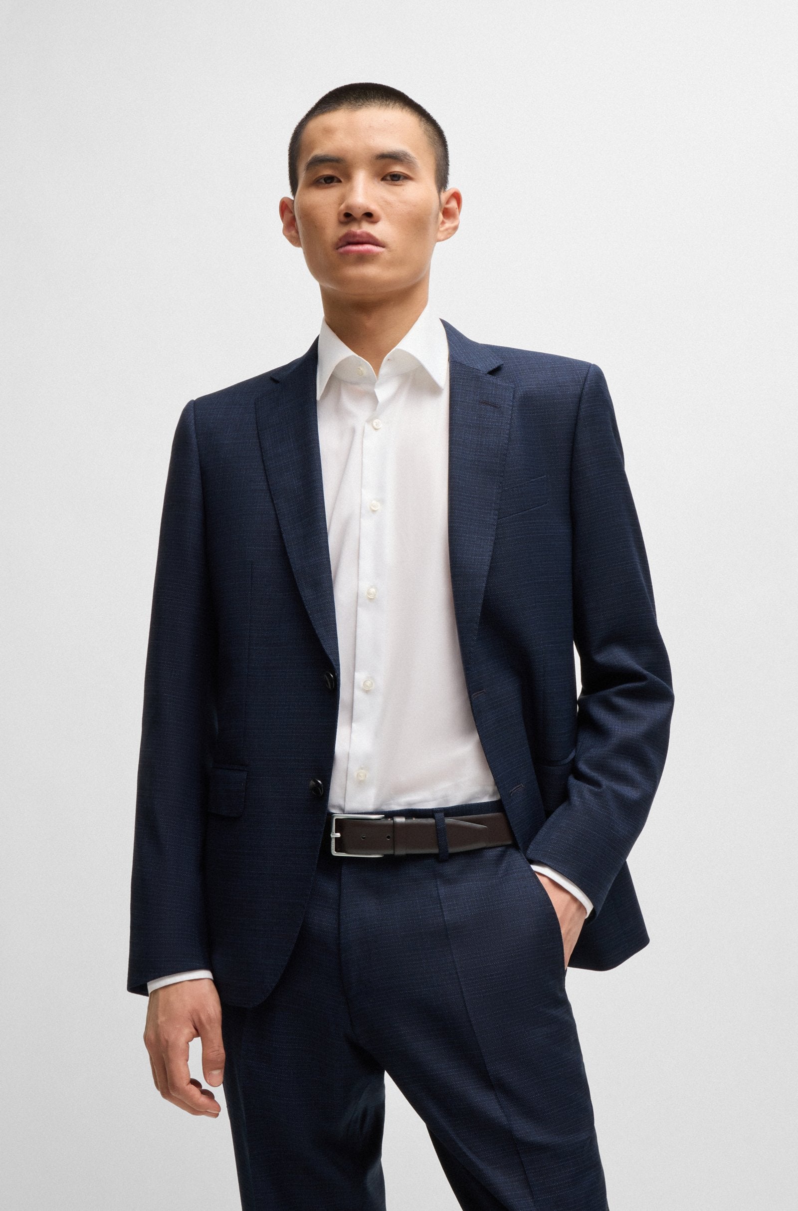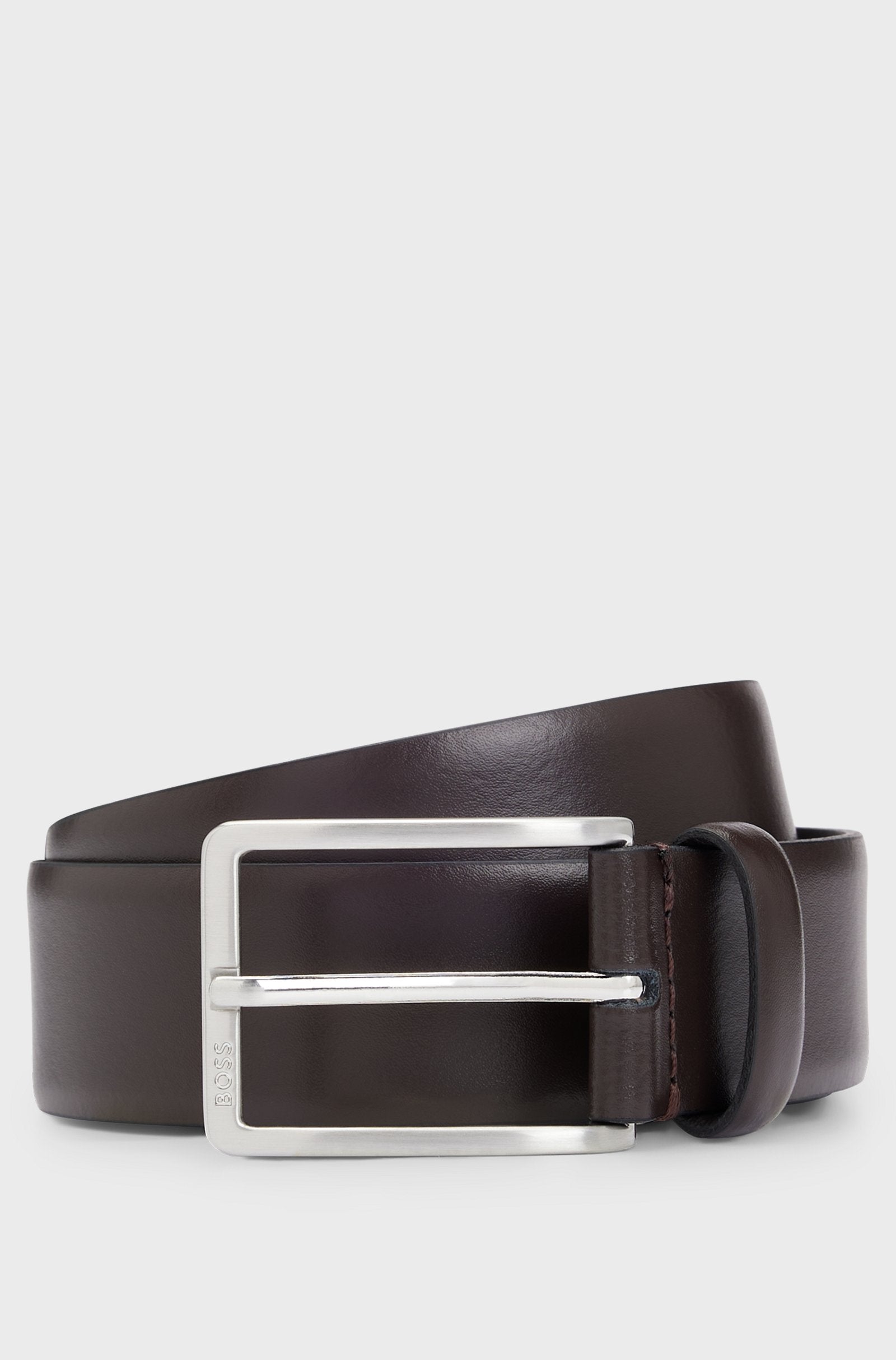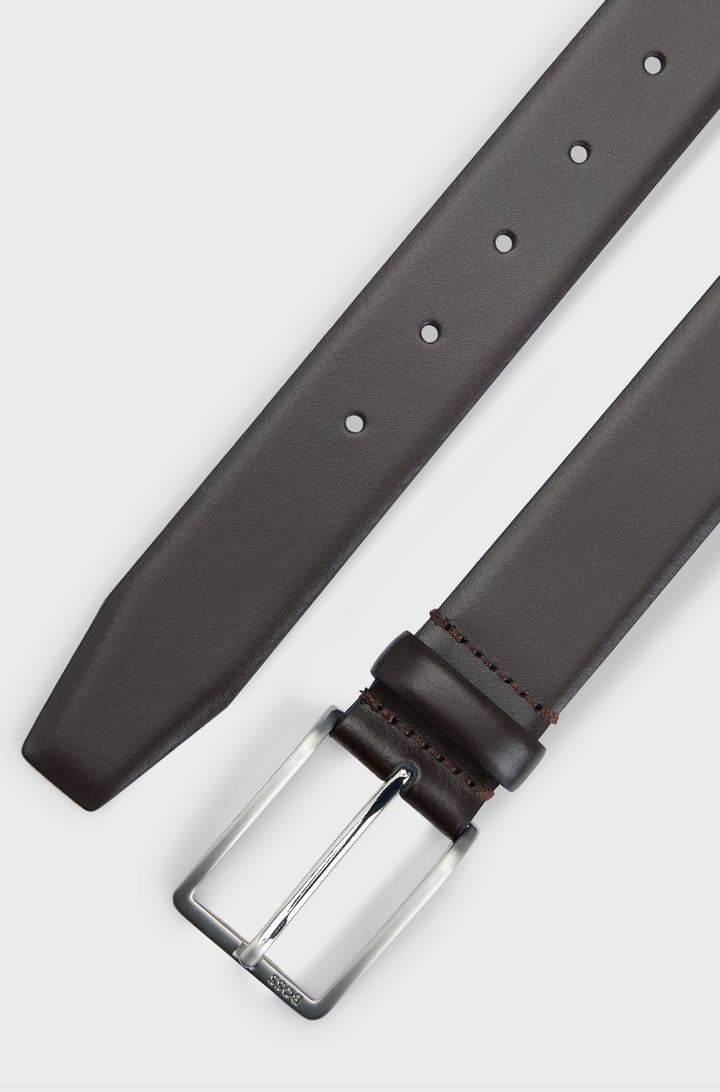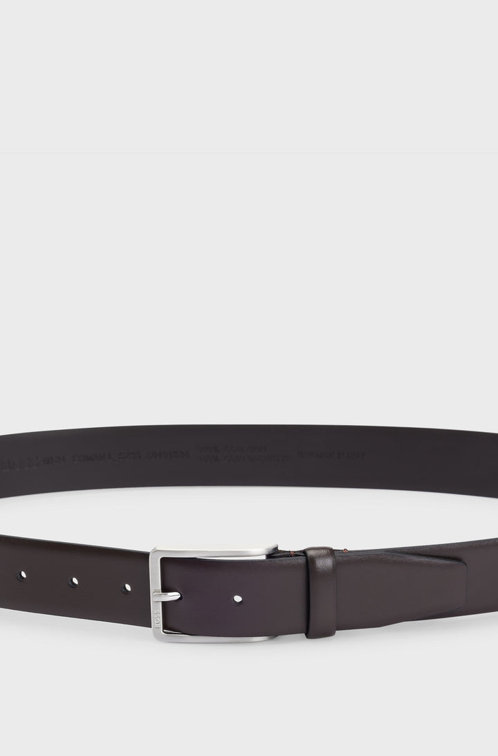 A versatile yet refined 3.5cm belt by BOSS made in Italy from smooth leather with a polished silver-tone pin buckle. This Dressletic style blends innovative performance technology with a tailored fit. Its elastic band near the engraved logo buckle ensures comfort without sacrificing support, ideal for work or leisure. We continuously look for more responsible ways to produce and finish our products. A minimum of 60% of the leather used to make this product has been sourced from certified tanneries.