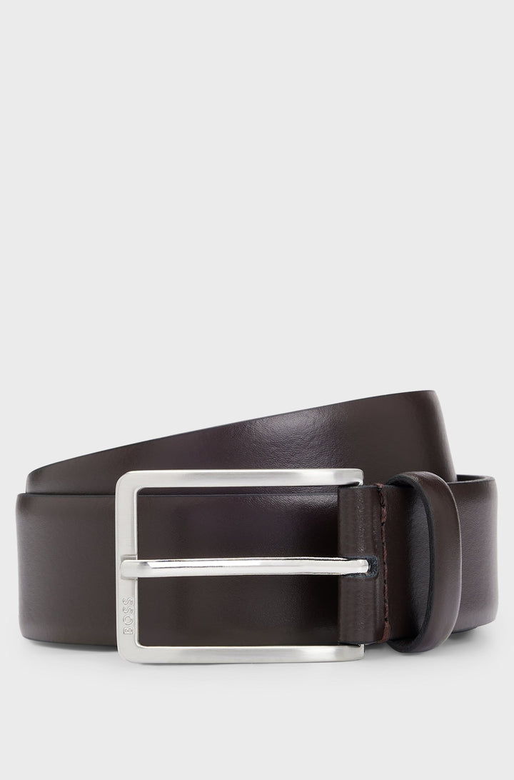 Italian-made leather belt with engraved-logo buckle