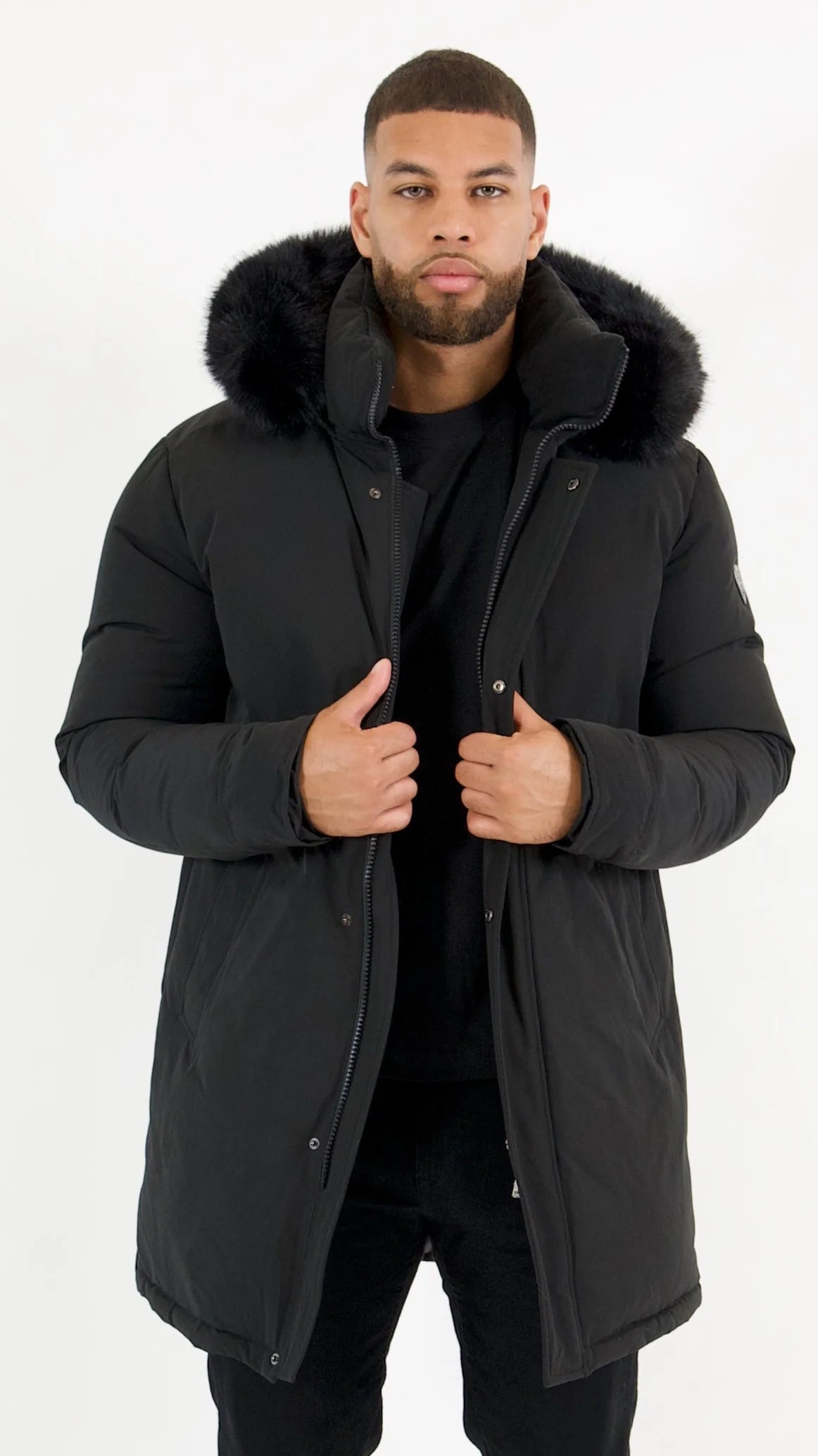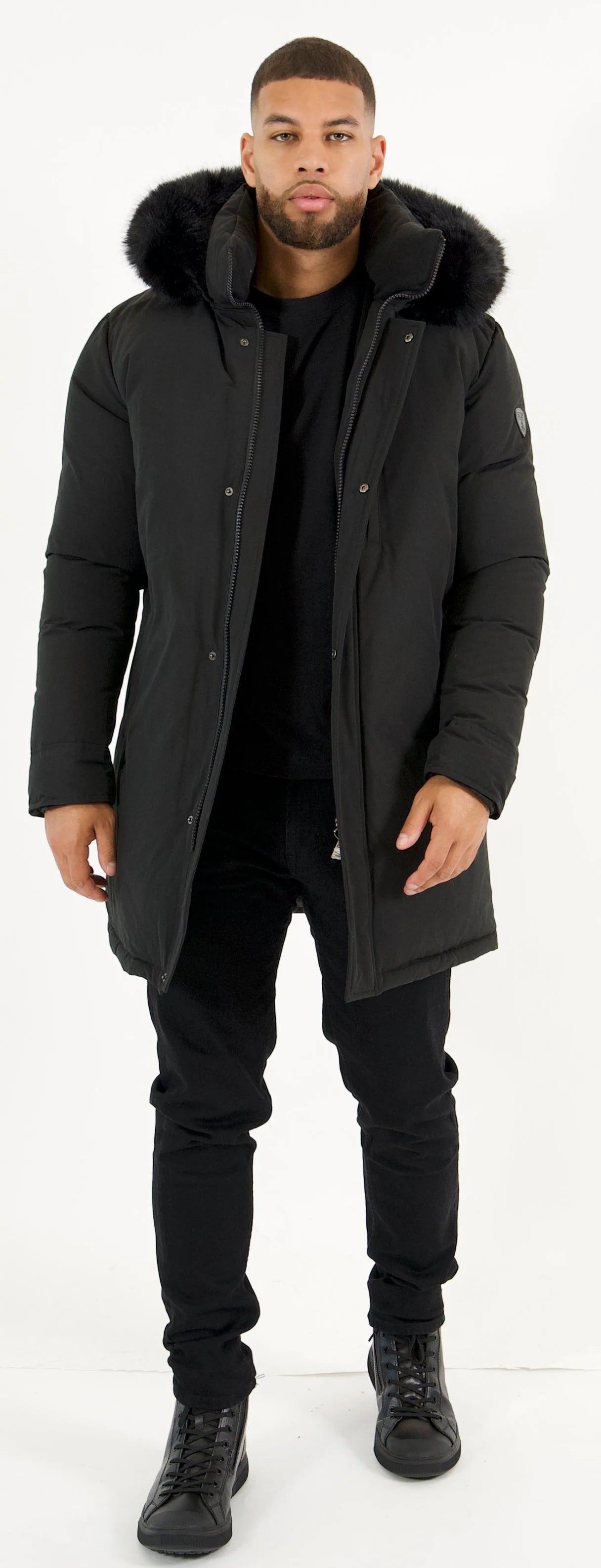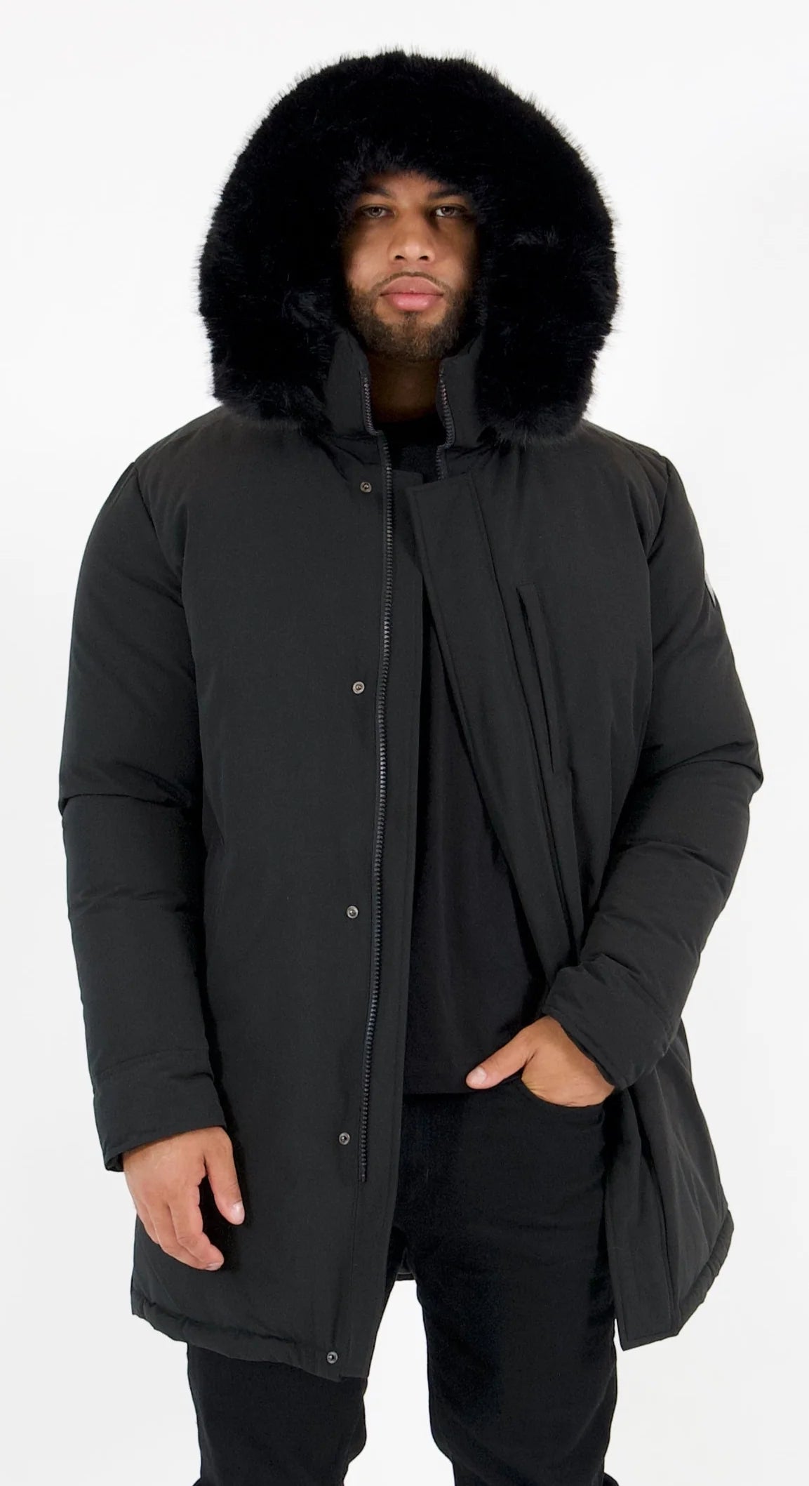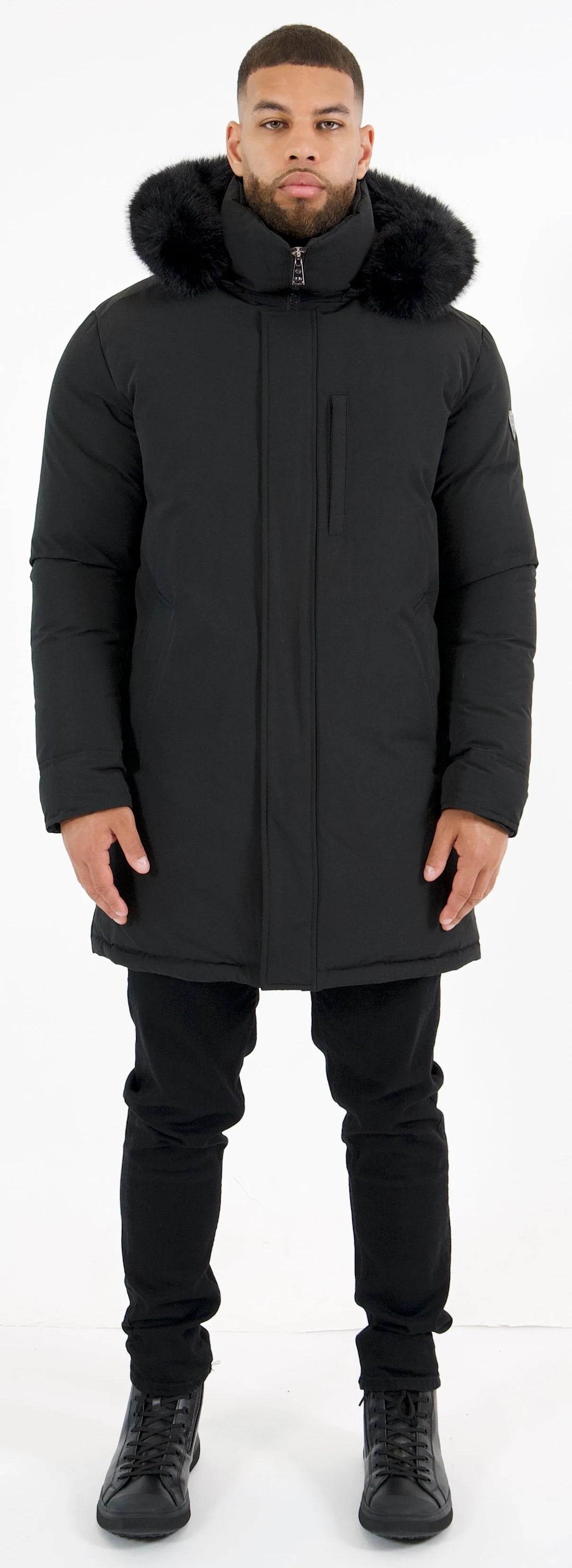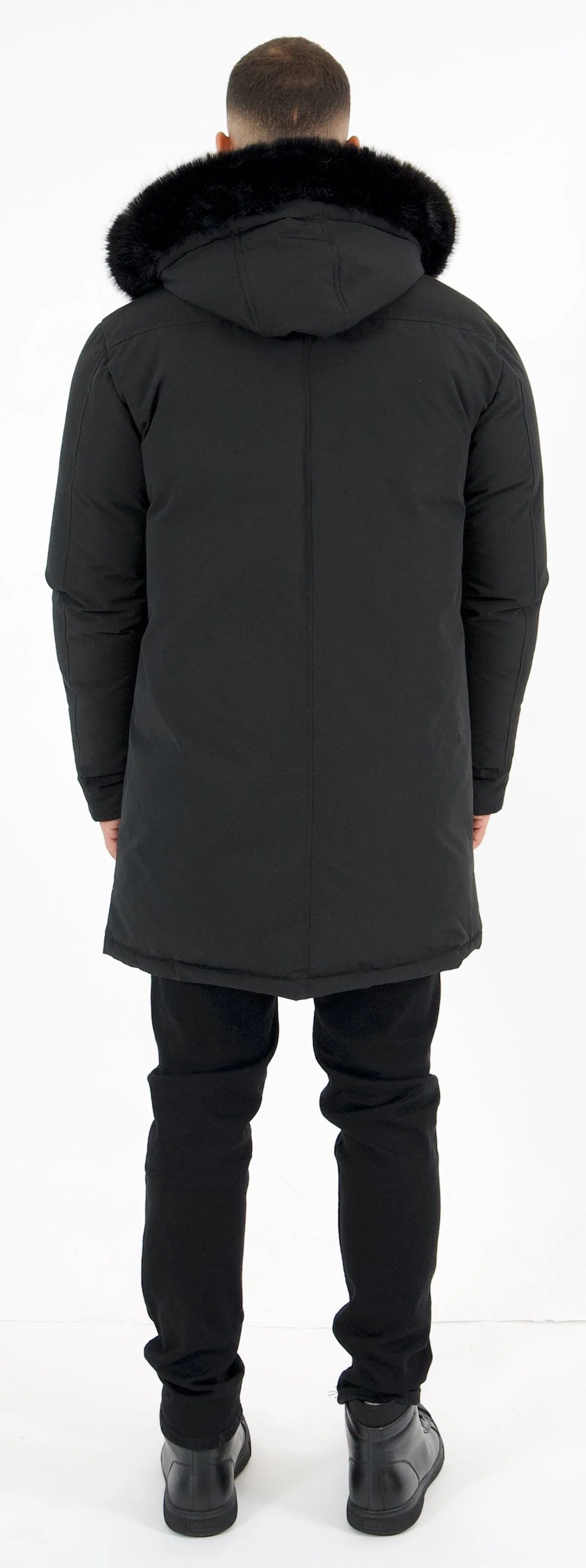 - Men's Parka Knee Length with Real Fur Trim Hood