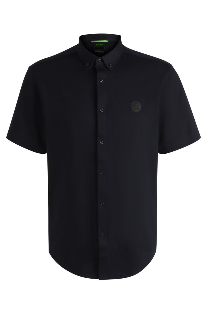 This wrinkle-resistant BOSS Menswear shirt is knitted in soft cotton with four-way stretch for comfort. Regular fit. Cleanly styled button-down collar.