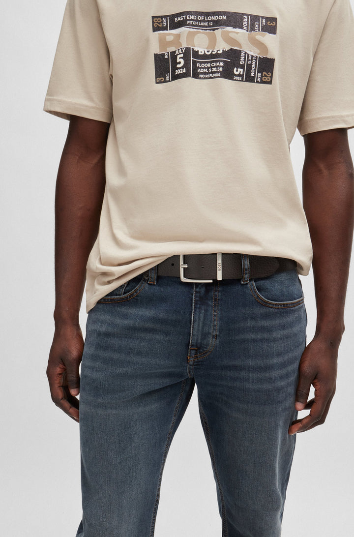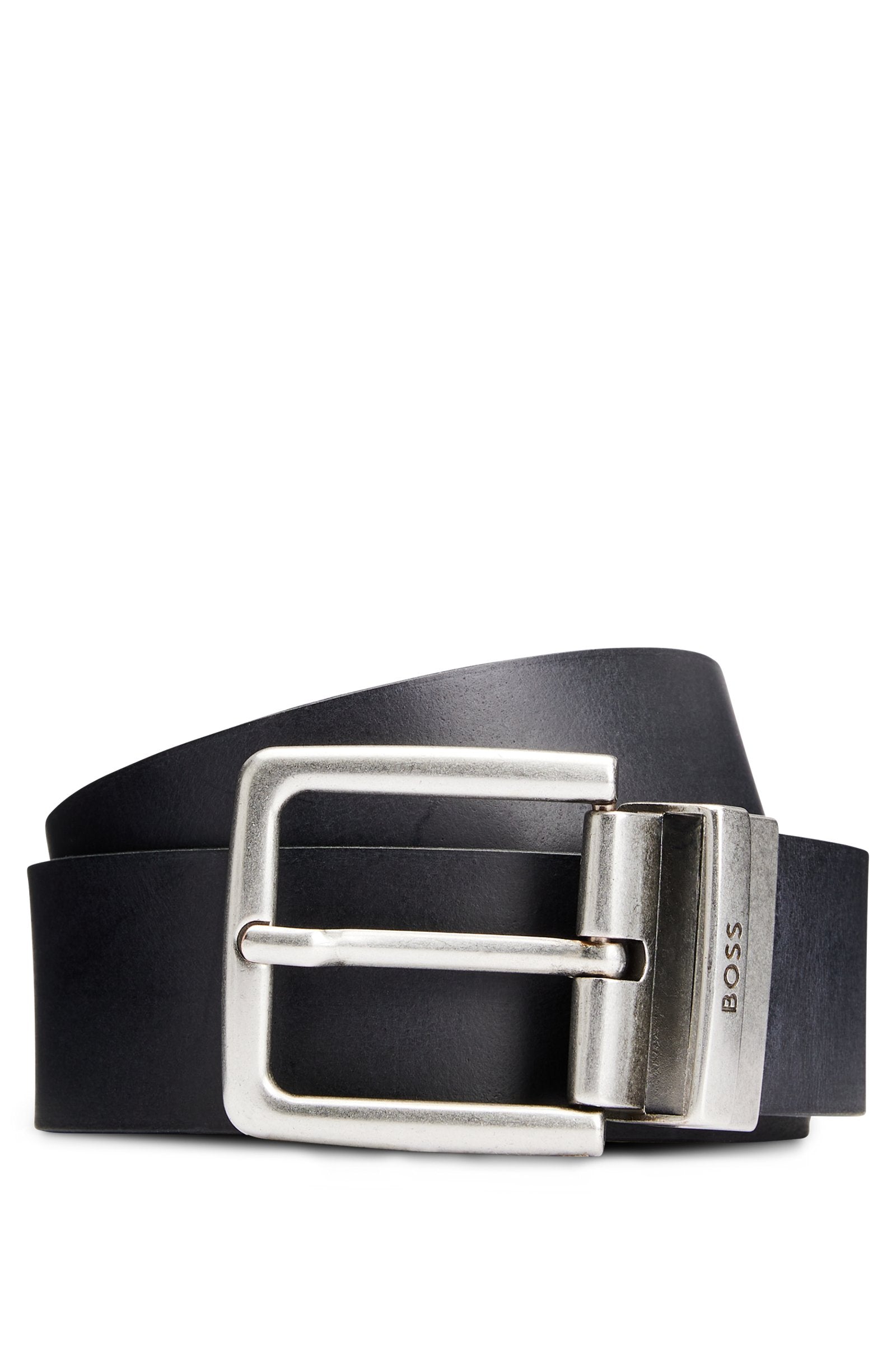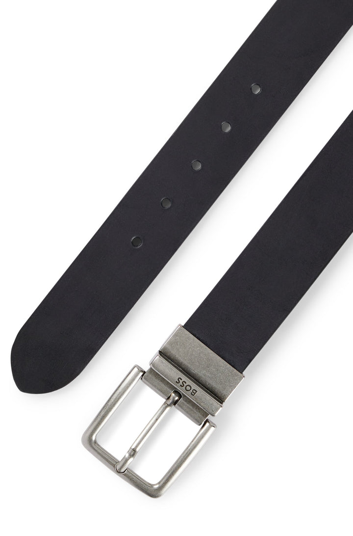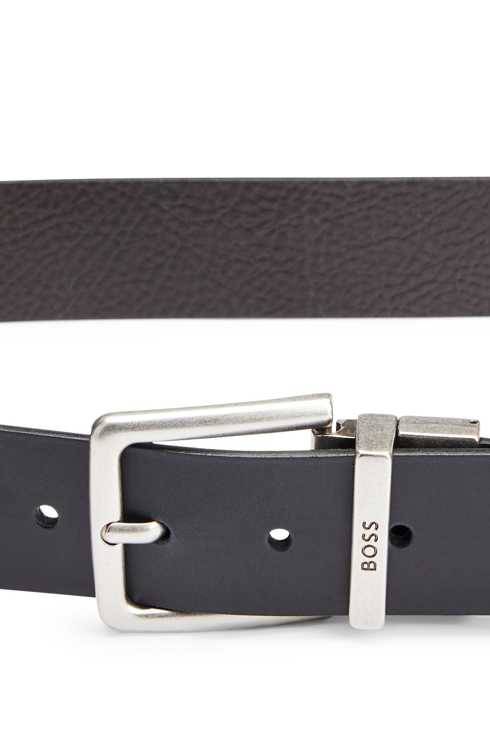 A 4cm reversible belt in plain and grained Italian leather with a silver-effect buckle and logo-engraved keeper by BOSS.
