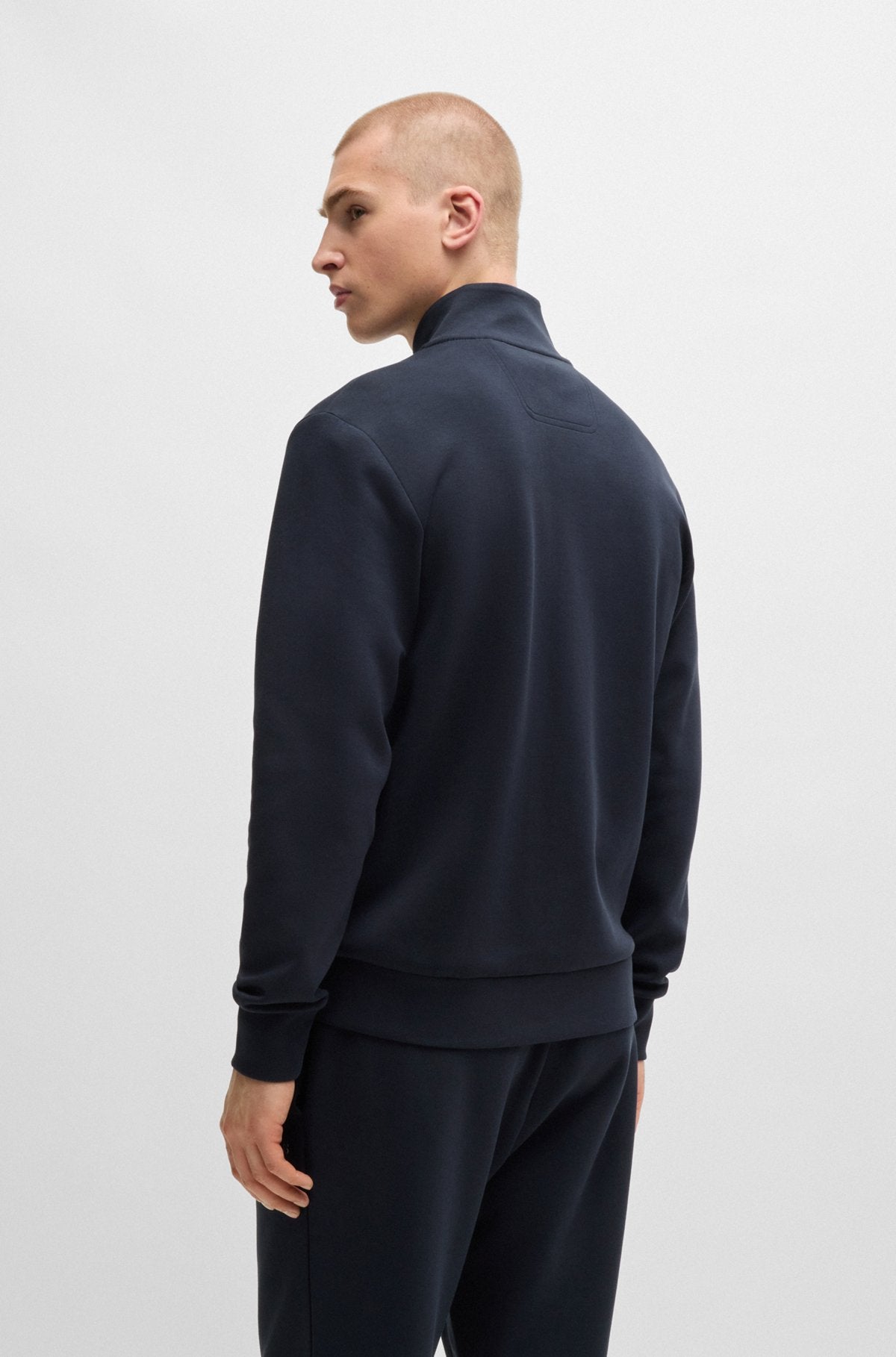 Stretch-cotton zip-up sweatshirt with logo print - Dark Blue